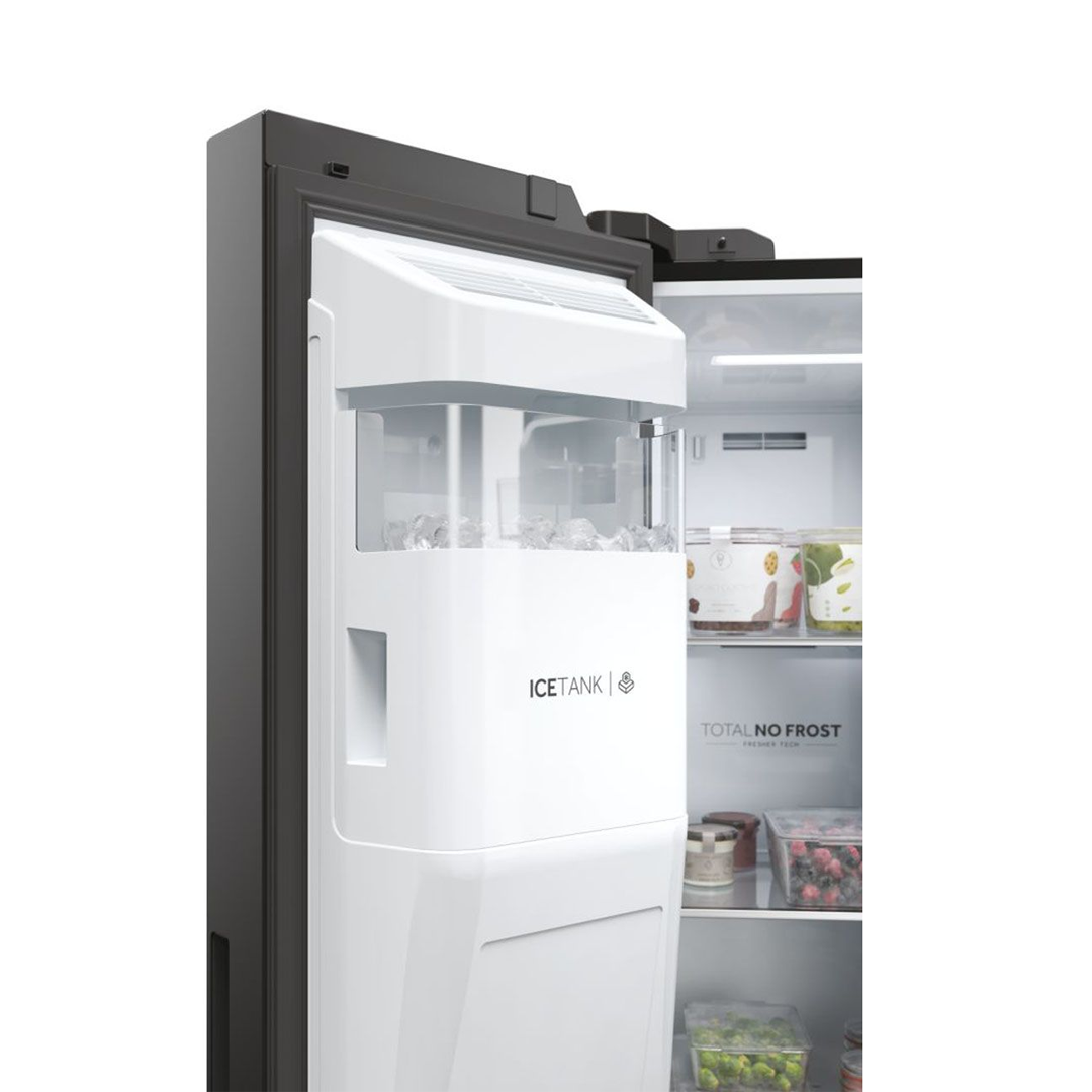 Haier hladilniki Side By Side 90 s širino 90 cm ponujajo veliko prostornino, dostopanje tako do hladilnega kot zamrzovalnega dela pa je enostavno. Obilje prostora vam omogoča shranjevanje velikih količini živil, hkrati pa je prostor organiziran in pregleden.