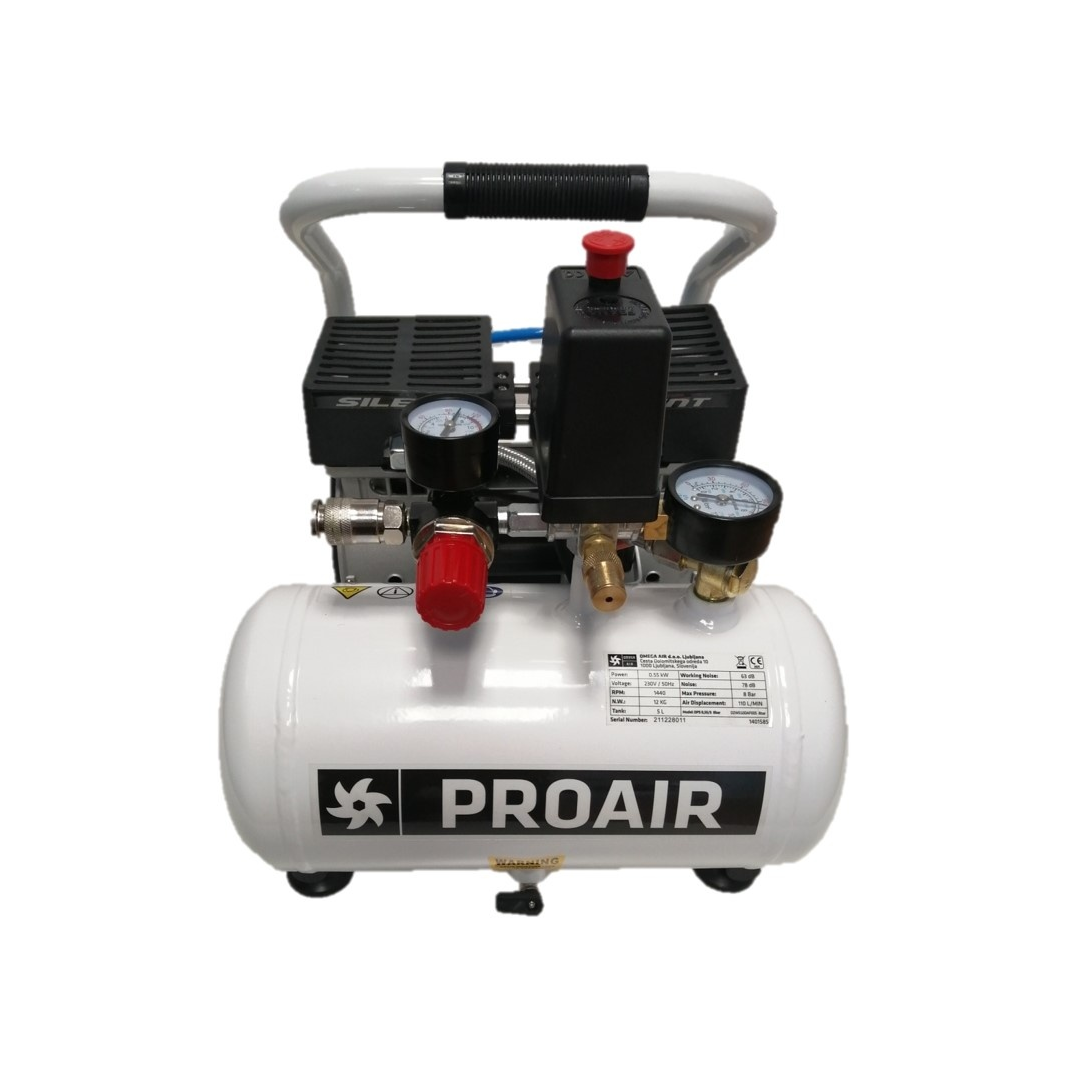 Kompresorji so izredno tihi, zato so posebej primerni za dejavnosti, kjer je hrup moteč (medicina, informatika, finomehanika). Zrak, ki prihaja iz teh kompresorjev je brez oljnih primesi (primerno za medicino, barvanje,…). Kompresorje odlikuje zanesljivo delovanje, osnovno vzdrževanje pa je enostavno in ga lahko stranka opravi sama. Za posebne namene uporabe (npr. zobozdravstvo) je na voljo dodatna oprema kot adsorpcijski sušilniki in filtri različnih zmogljivosti, ki so plod našega razvoja. Z uporabo le-teh lahko zrak poljubno očistimo in posušimo, ter pripravimo glede na specifično področje uporabe.