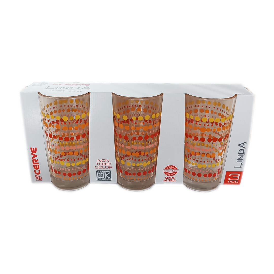 Set 3 pisanih rdeče-rumenih kozarcev za sok