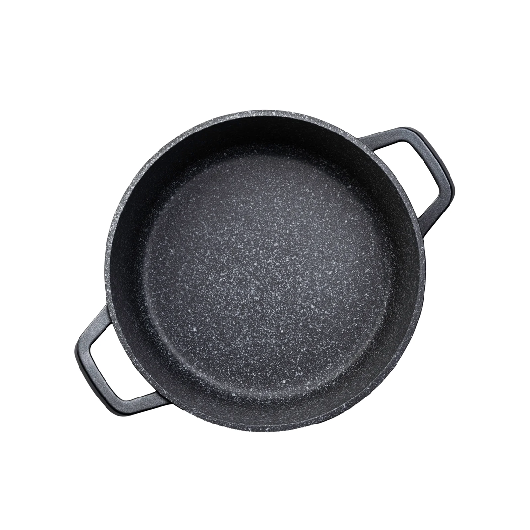 Visokokakovosten nemški premaz proti prijemanju GREBLON C3 GRANITE na notranji strani omogoča enostavno pripravo zdravih obrokov z manj maščobe, toplotno odporen lak na zunanji strani pa zagotavlja dolgotrajen estetski videz.