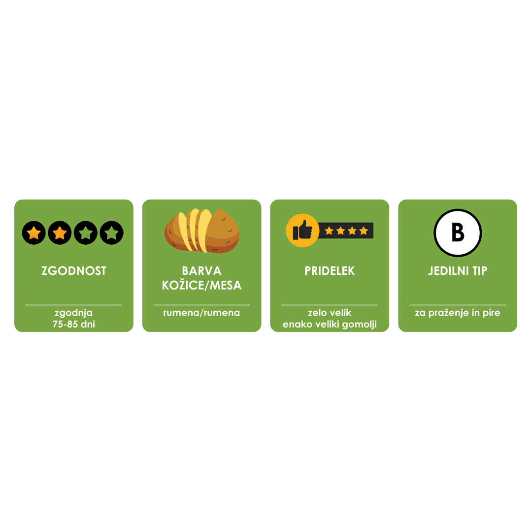 • zelo primerna tudi za praženje po ocenjevanju Društva za priznanje praženega krompirja kot samostojne jedi