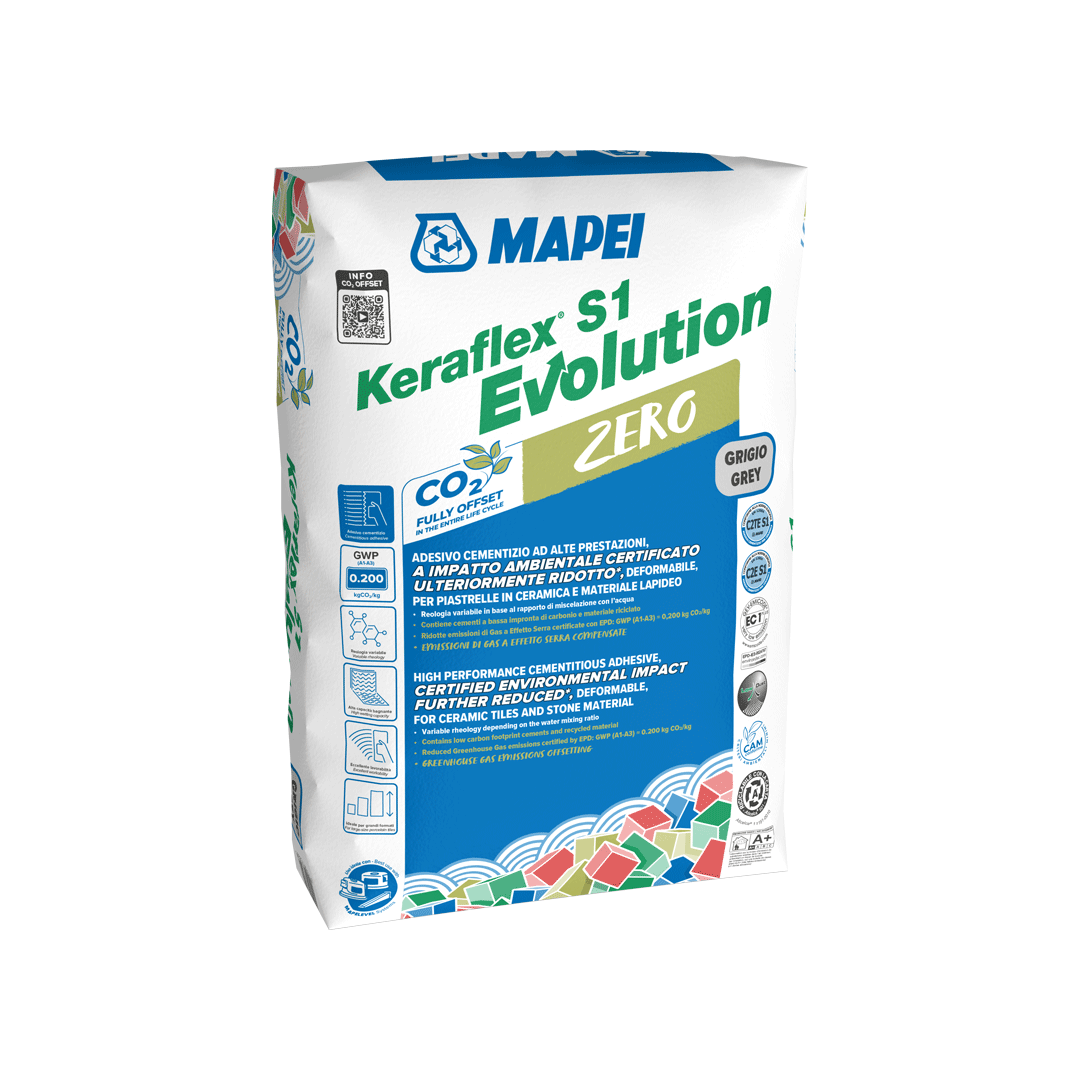 KERAFLEX S1 EVOLUTION ZERO je visokozmogljivo cementno lepilo za polaganje keramičnih ploščic in kamna, zlasti velikih formatov, brez vertikalnega zdrsa.