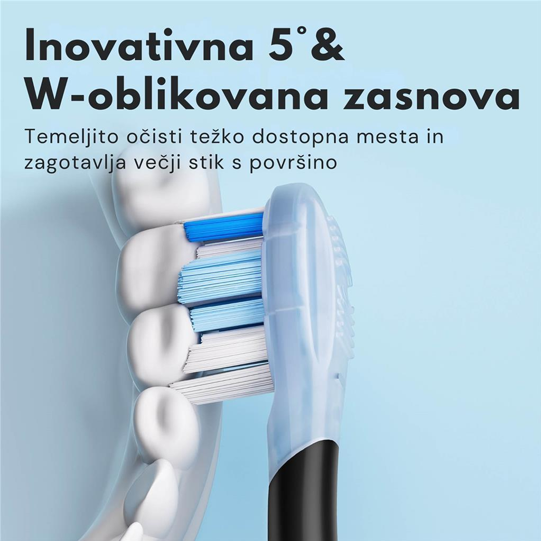 • Inovativen 5 stopinjski naklon: Omogoča globinsko čiščenje pod linijo dlesni in na težko dostopnih mestih.