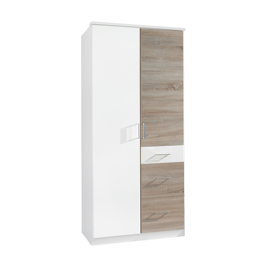Trendovska garderobna omara poskrbi za red v vaši spalnici. Moderen dizajn in elegantna bela barva z kombinacijo hrasta poživi vsak prostor.