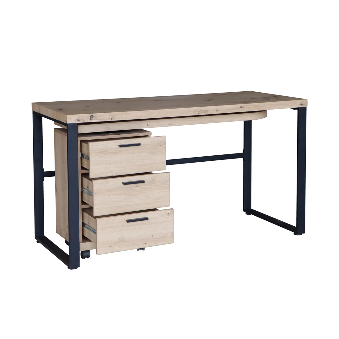 Miza je opremljena s tremi predali, ki nudijo praktičen prostor za shranjevanje pisarniških potrebščin in ohranjajo delovni prostor urejen.