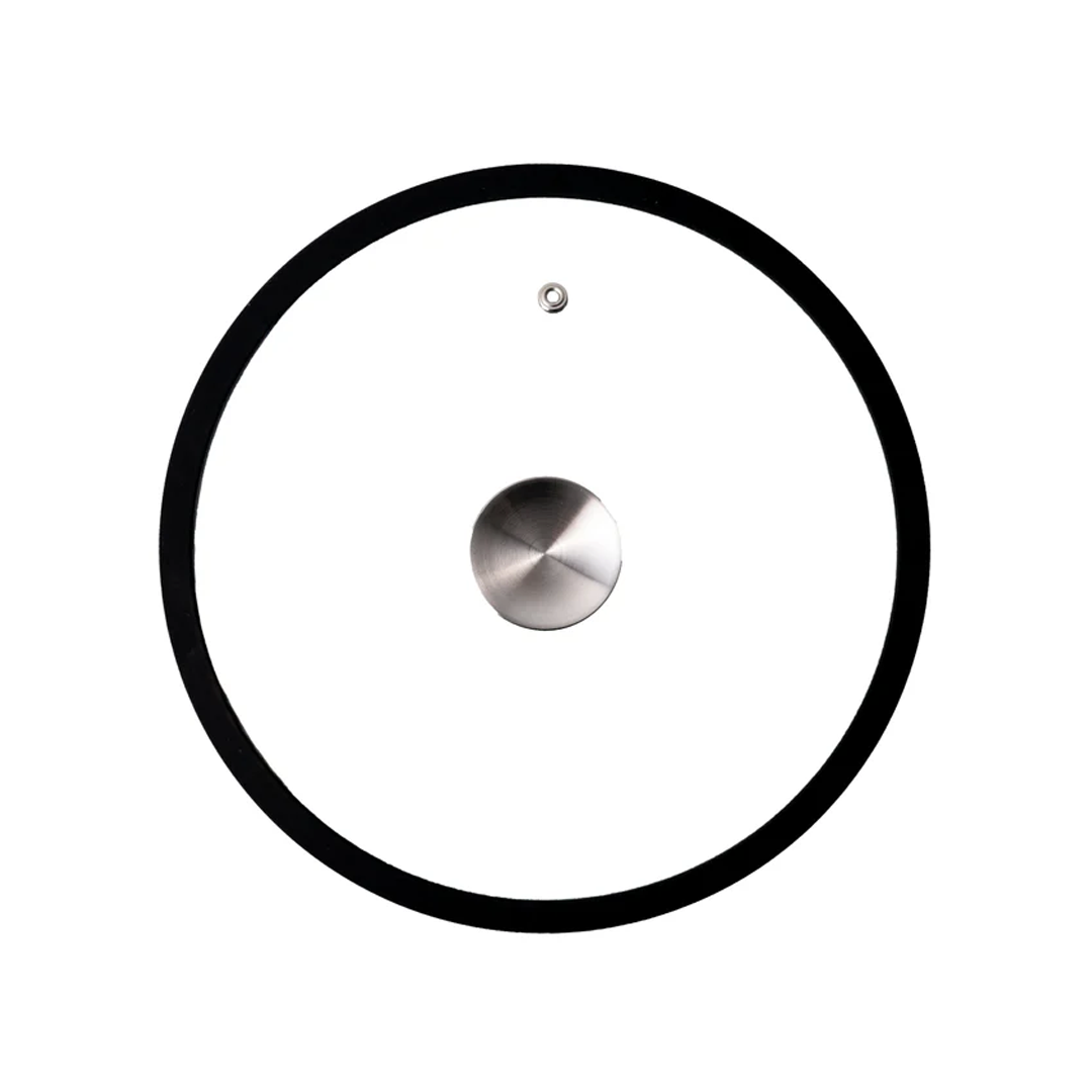Pokrovka premera 28 cm iz kaljenega stekla, s silikonskim robom in gumbom iz nerjavečega jekla. Zaradi silikonskega roba se popolnoma prilega posodi premera 26 cm. Primerna je za pečico.