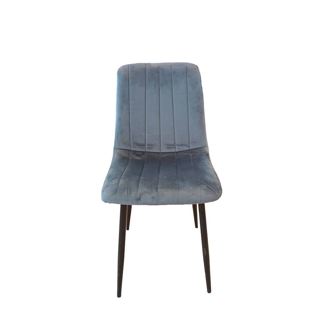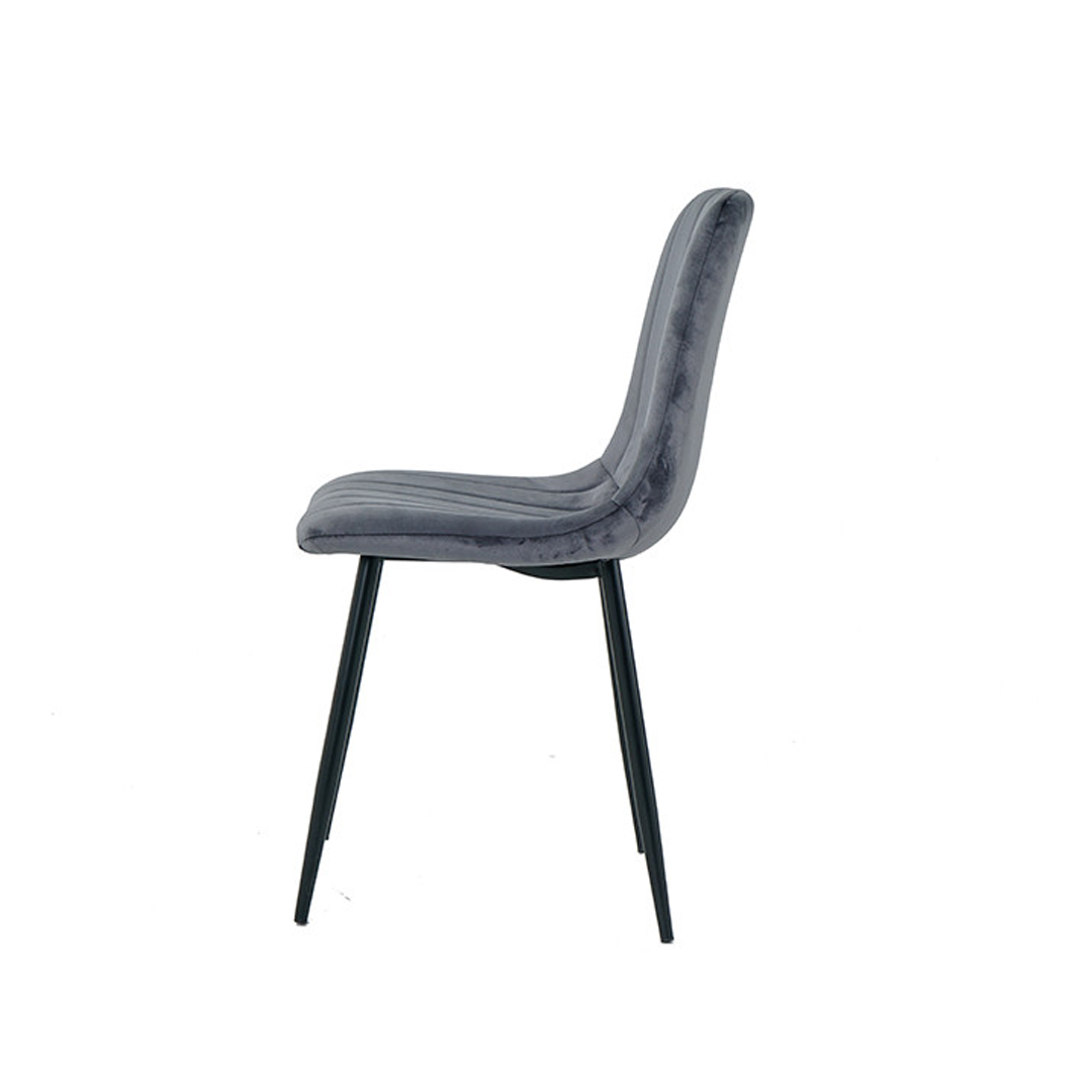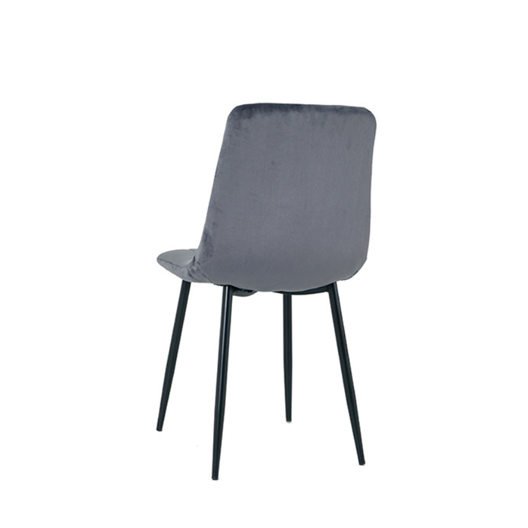 Jedilni stol FOXY velvet siva je odlična rešitev za kombiniranje v minimalističen ali industrijski stil prostora. Kombinacija sivega prešitega blaga s črnimi kovinskimi nogami ustvari eleganco in lahkotnost. Noge so prašno barvane s debelino profila 1,2 mm. Profiliran naslon omogoča optimalen položaj sedenja ter udobje. Raven vzorec šiva na tkanini pa okrepi tkanino oblazinjenja in ustvari dodatno eleganco.