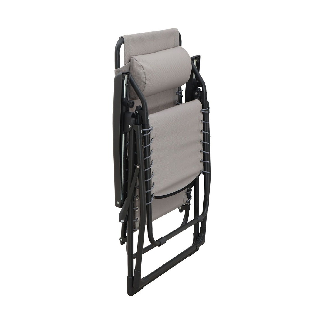 Stol je idealna izbira za sproščanje na majhnem dvorišču, v vrtu, na terasi ali v kampu. Z možnostjo prilagajanja več položajev naslonjala in nog omogoča optimalno udobje, ne glede na to, ali berete, dremate ali uživate v svežem zraku. Stol je enostaven za zlaganje in prenašanje, kar omogoča preprosto shranjevanje ali premikanje. Njegova robustna jeklena konstrukcija s prašnim premazom zagotavlja odlično odpornost na vremenske vplive, medtem ko je sedež izdelan iz PVC premazanega poliestra, ki omogoča dobro zračenje in udobje tudi v toplejših dneh.