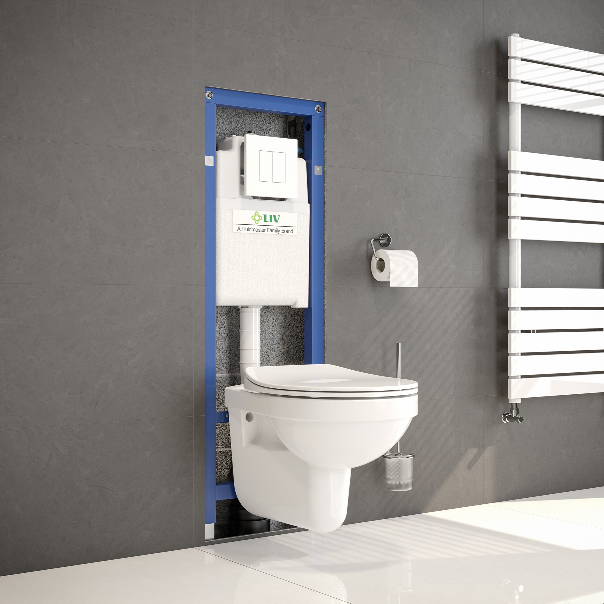 Komplet 4v1 sestavljajo: Kotliček LIV FIX 3800 (7030452701), tipka Opal ali Onyx (7030414601, 7030415601), deska Aquarius S (1409268301), školjka Sydney rimless – brez roba (9100901726)