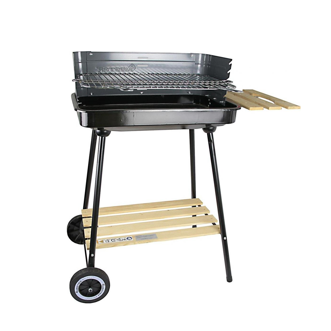 Jeklen žar na oglje, opremljen z dvema kolesoma za lažji transport in stransko ploščo in spodnjo polico, ki olajšata pripravo jedi z žara. Rešetka za peko ima 5 stopenj nastavitve višine.