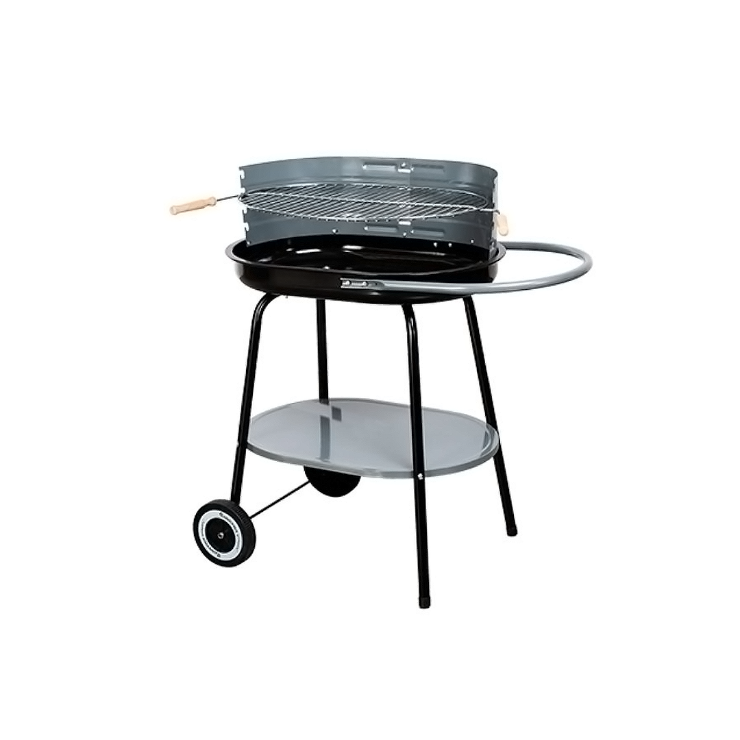 Ovalni žar na oglje z rešetko, spodjo polico in kolesi.